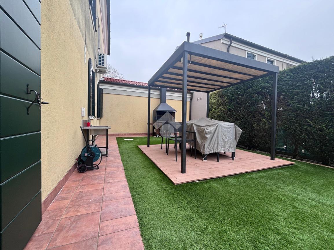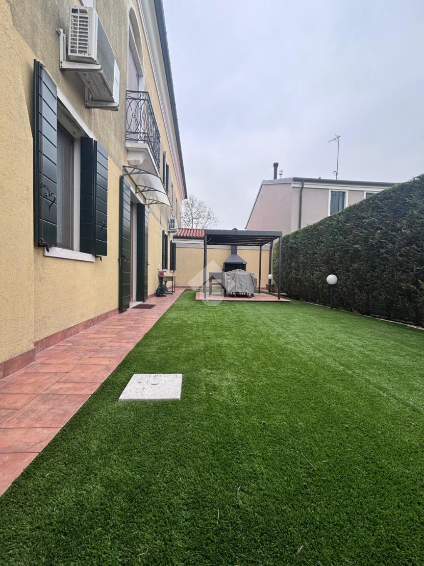 Camponogara: in località Prozzolo, nelle immediate vicinanze di tutti i servizi ma il strada secondaria molto tranquilla, appartamento al piano terra con ingresso indipendente. Dal giardino privato con esposizione a sud, si accede alla zona living dell'immobile composta da soggiorno e cucina openspace particolarmente luminosa vista la doppia esposizione. Attraverso un disimpegno si accese alla camera matrimoniale, a una seconda camera attualmente adibita a cabina armadio e a un primo bagno finestrato con doccia. Un secondo disimpegno presenta un ripostiglio ideale da adibire a lavanderia, una terza camera e un piccolo bagno di servizio finestrato. Dalla porta-finestra della zona giorno, è possibile uscire in un secondo giardino esclusivo con prato attualmente sintetico, completo di platea con gazebo, ideale per vivere lo spazio esterno in pieno comfort e privacy. Completano la proprietà un garage nel piano seminterrato e un posto auto all'interno dello spazio condominiale.