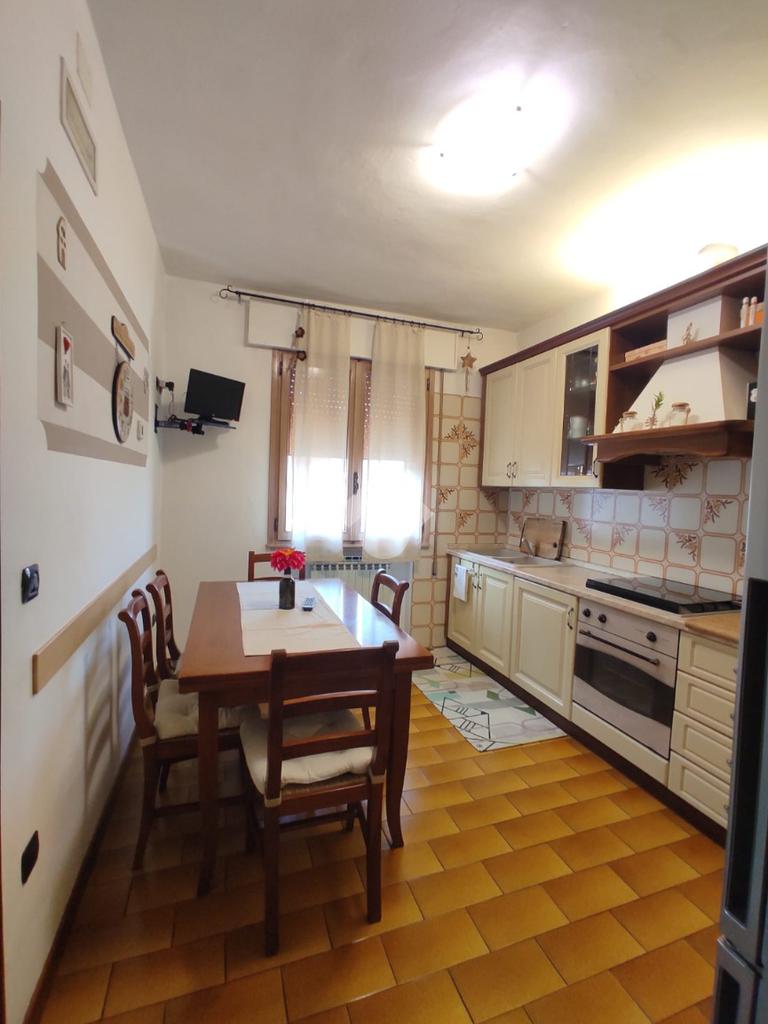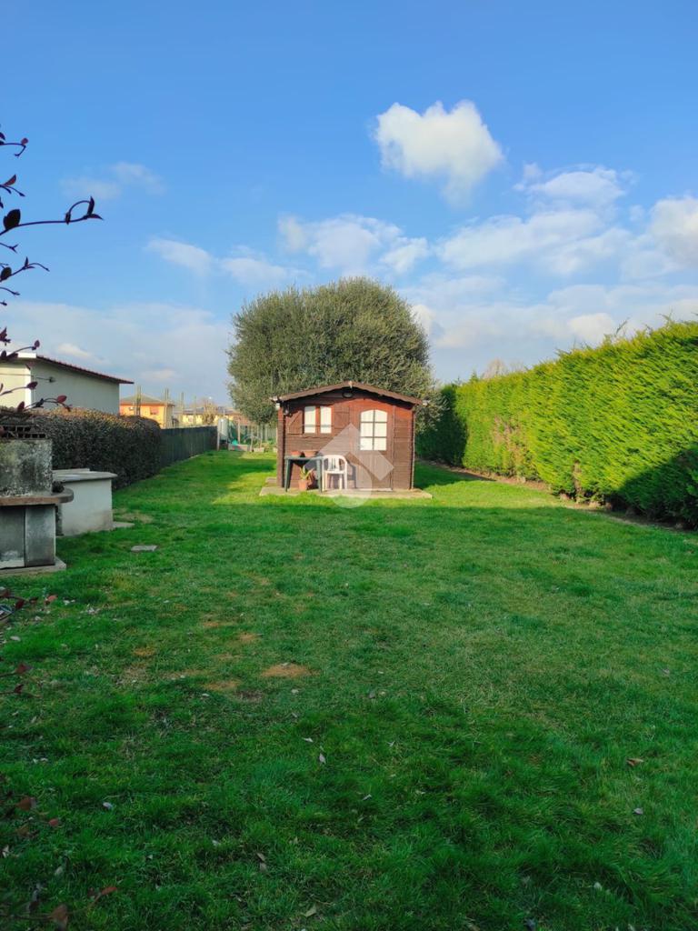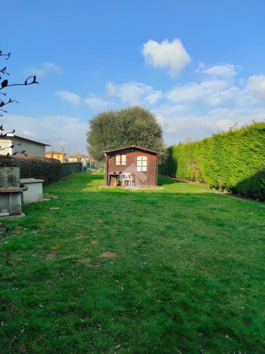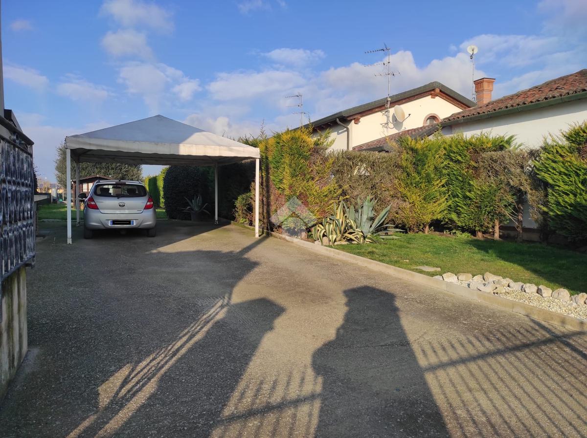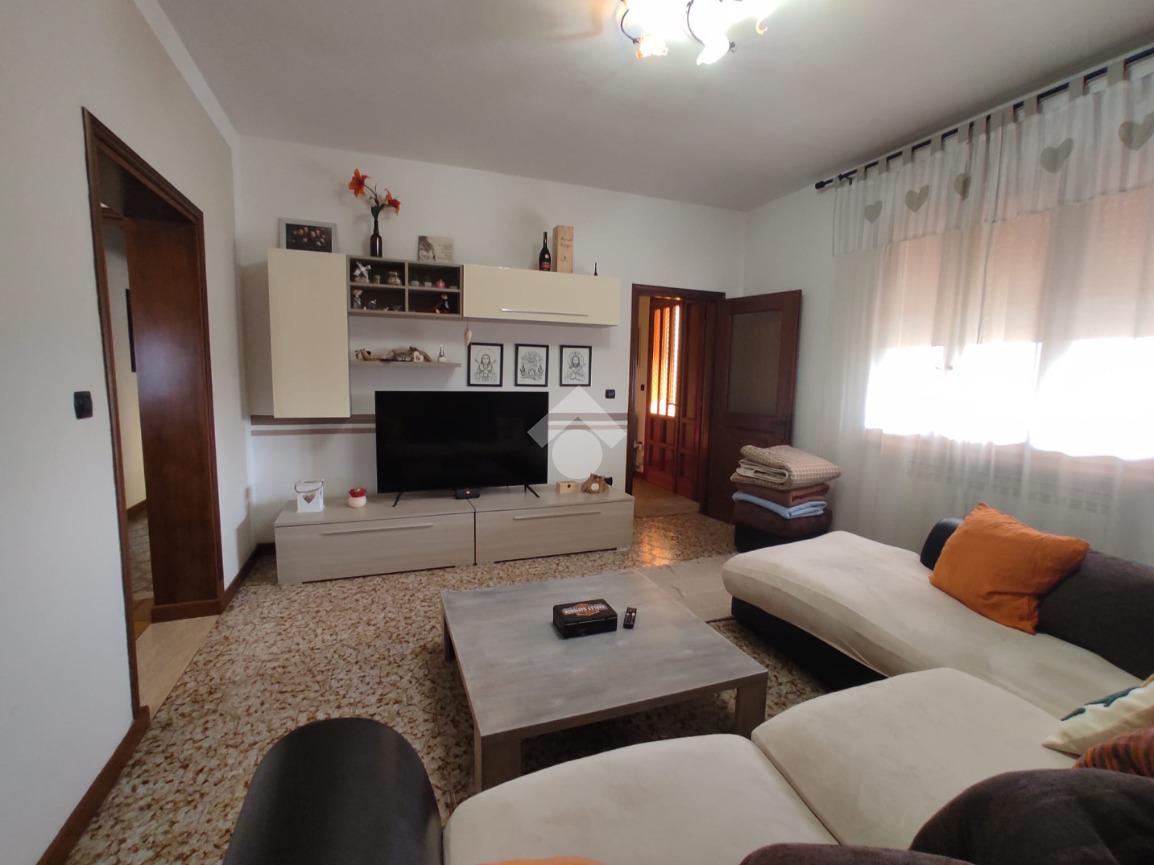 Cavarzere: in località Rottanova, con ingresso carraio indipendente e ampio giardino recintato, porzione di bifamiliare in orizzontale sviluppata al primo piano. Dalla scalinata esterna e un comodo terrazzo, si accede all'ingresso dell'immobile che separa il luminoso soggiorno dalla cucina abitabile. Il disimpegno conduce al bagno finestrato con doccia interamente ristrutturato e alle due camere entrambe matrimoniali. Una terza camera matrimoniale, attualmente adibita a ripostiglio/lavanderia è accessibile dal soggiorno. L'abitazione si presenta in ottime condizioni essendo stati rifatti gli impianti e il tetto. A completare, ampio scoperto per metà pavimentato e per metà piantumato, ideale per usufruire di posti auto interni alla proprietà e per la vita all'esterno nella tranquillità della campagna. Attiguo terreno seminativo di 490 mq coltivato a orto ma utilizzabile a seconda delle proprie esigenze.