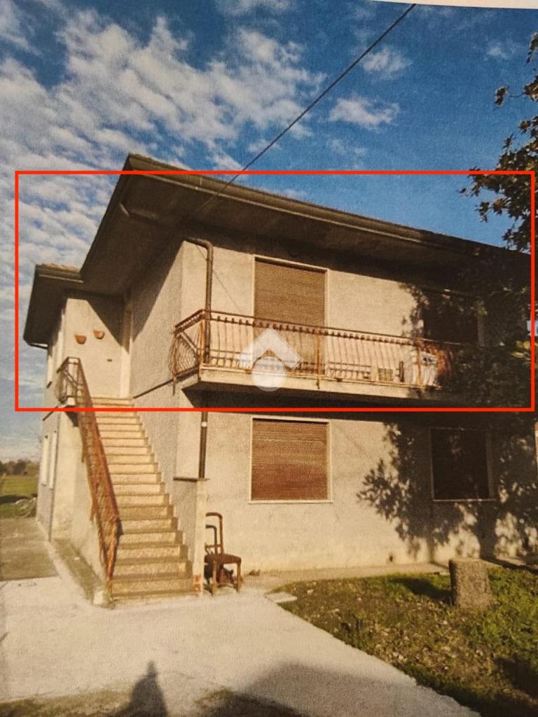 Rottanova di Cavarzere: in tranquilla zona residenziale, circondata dal giardino recintato, ampia porzione di bifamiliare da ristrutturare sviluppata al piano primo. Con accesso da scala esterna, l'immobile si compone di ingresso sul comodo disimpegno che separa la cucina abitabile dal soggiorno, entrambi con uscita sul poggiolo. Due camere da letto matrimoniali, una delle quali con un secondo poggiolo, il ripostiglio e il bagno finestrato con vasca completano la porzione. Libera e disponibile da subito, necessita di ristrutturazione conservativa e migliorativa. A completare, terreno di 1.820 mq.