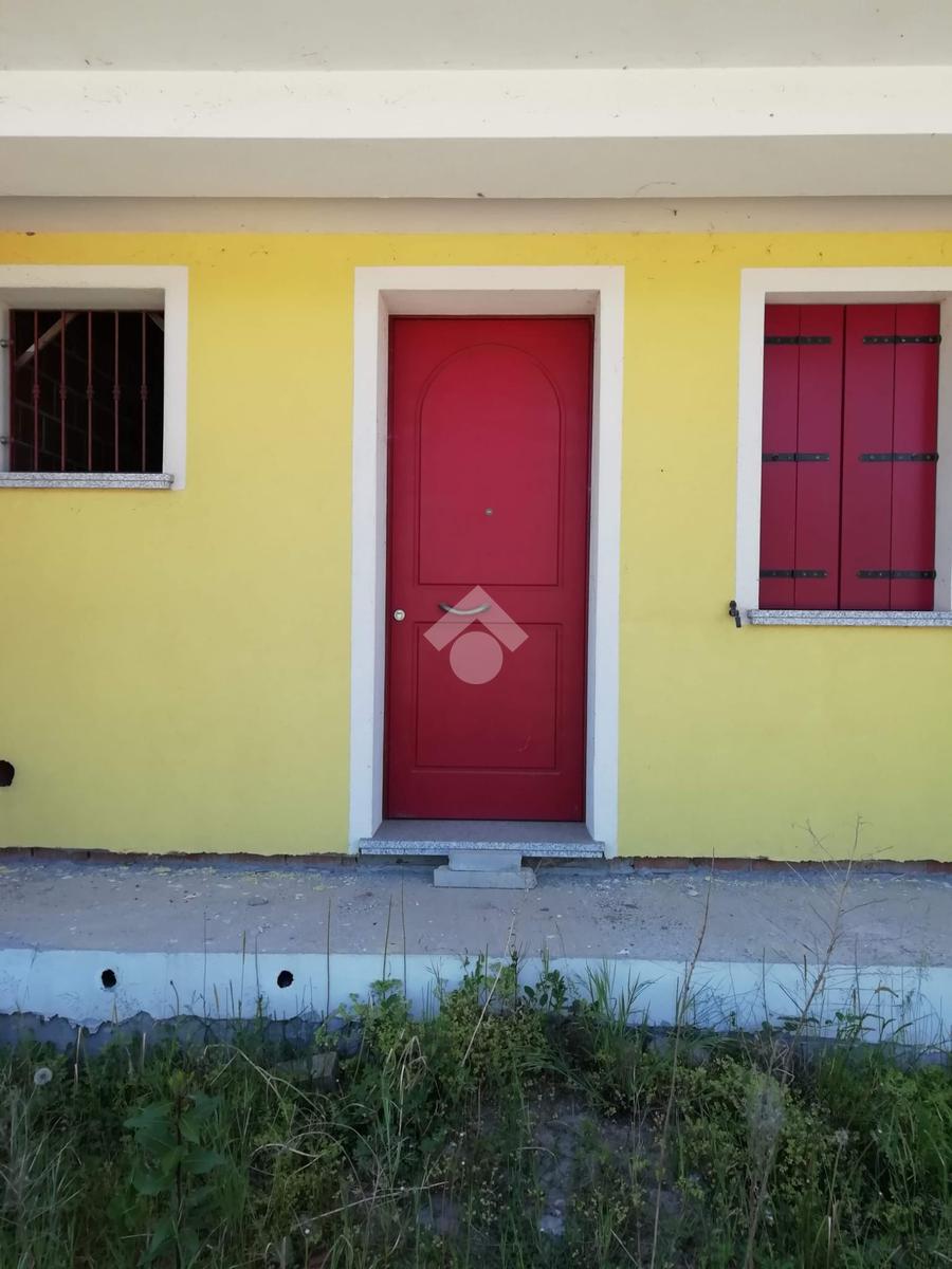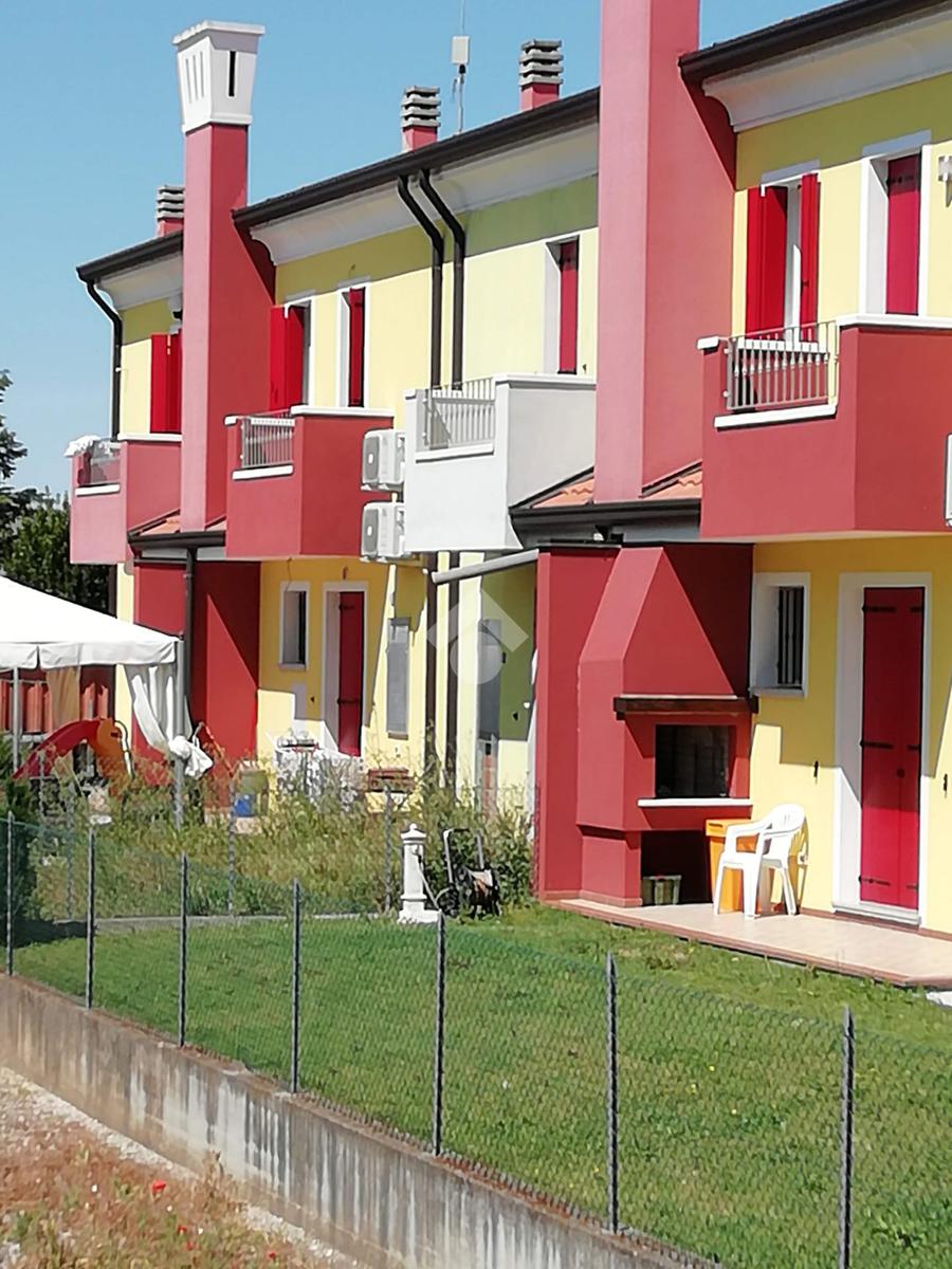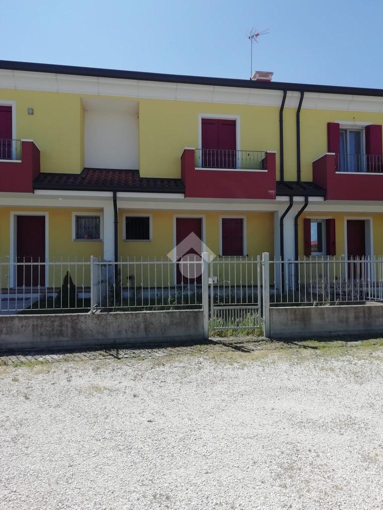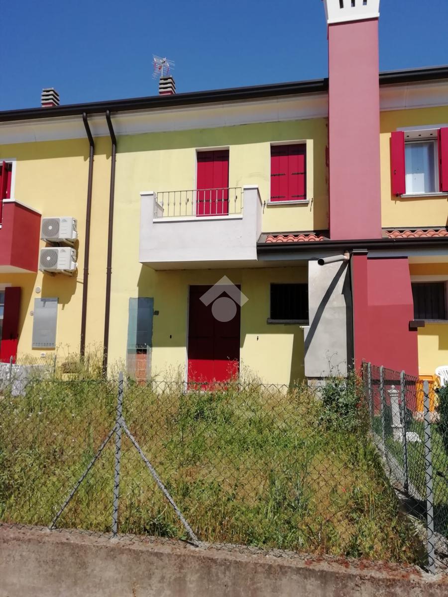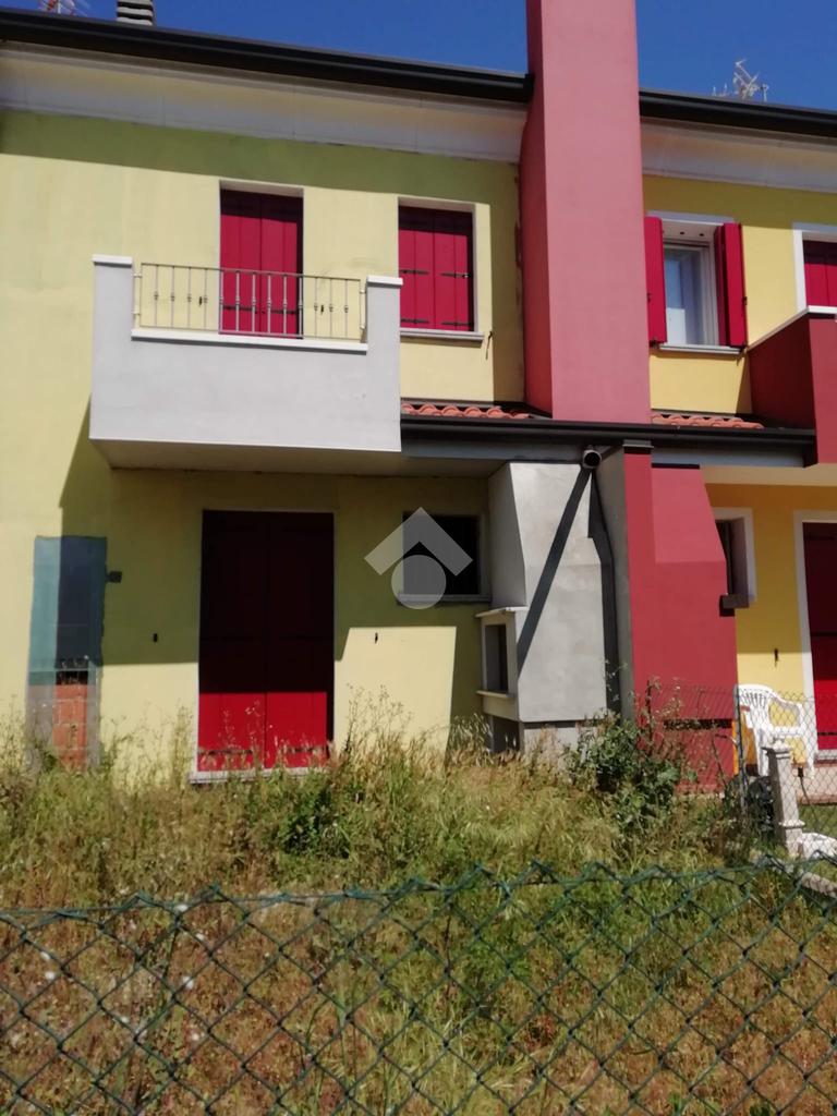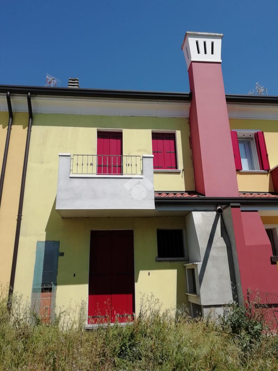 Cavarzere: in un tranquillo contesto residenziale nei pressi della zona artigianale, porzione di villa a schiera allo stato grezzo. Dall'ingresso indipendente, con piccolo giardinetto, si accede al piano terra dell'immobile che si compone di zona giorno con angolo cottura, un comodo bagno finestrato, un sottoscala e l'uscita sul retro dov'è presente un ulteriore giardino esclusivo recintato con caminetto. Le scale conducono al primo piano che presenta due camere entrambe con poggiolo e il secondo bagno finestrato, oltre una 'nicchia' ideale per creare un armadio a muro. La porzione, su due livelli e finita esternamente anche con cappotto, si presenta allo stato grezzo permettendo così ampia possibilità di personalizzazione. A completare garage in corpo staccato e posti auto sia recintati che non.