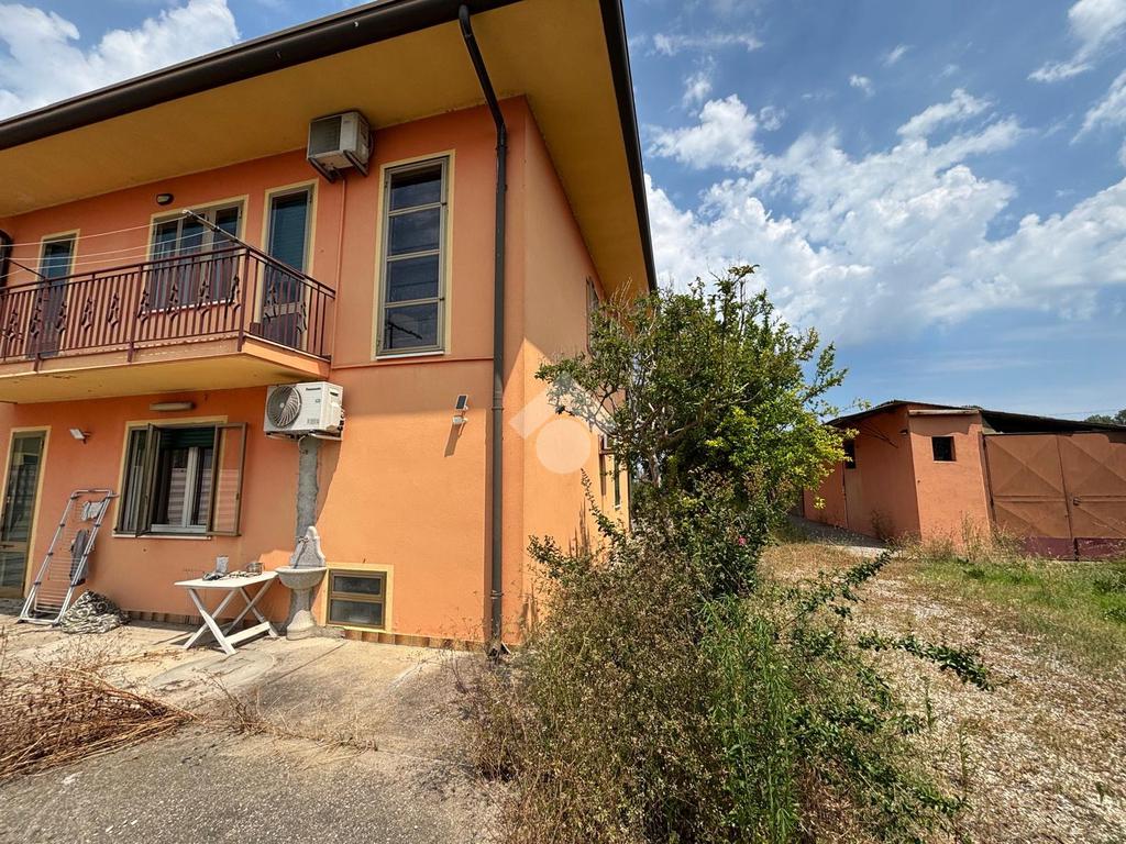 Correzzola: In zona tranquilla, immersa nella serenità della campagna, porzione di bifamigliare disposta su due livelli in parte ristrutturata nel 2019. L'immobile presenta al piano terra ampio ingresso con cucinotto/ sala pranzo e soggiorno separato con dimensioni generose e un bagno con doccia, piccolo ripostiglio nel sottoscala. Le scale conducono al piano primo, piccolo disimpegno e vi sono tre camere di cui due matrimoniali tutte con poggiolo e un bagno finestrato. A completare al piano terra magazziono con tre ingressi