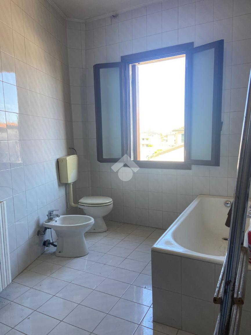 Piove di Sacco: In centro paese, porzione a schiera disposta su due livelli con scoperto esclusivo di proprietà. L'entrata dalla strada principale conduce all'ingresso molto ampio, soggiorno separato dalla cucina abitabile, con accesso nel cortile retrostante. Le scale conducono al piano primo dove vi sono tre camere molto spaziose, un disimpegno ed il bagno finestrato. Possibilità di creare un secondo servizio al piano terra e copertura per le auto nel giardino. Abitabile e disponibile da subito.